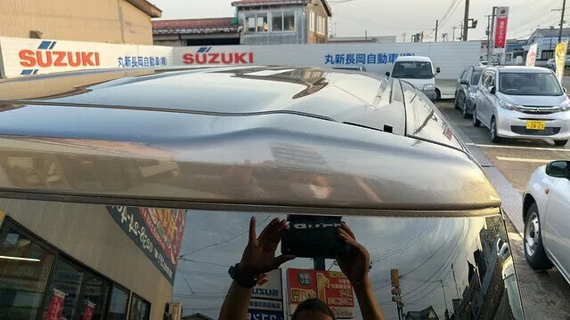 脚立を車の屋根に倒してしまいこの有り様。